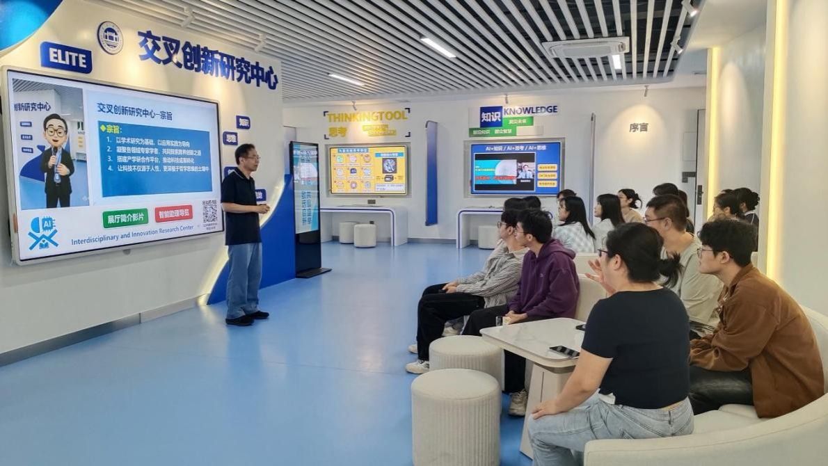 本网讯 10月29日上午,我院2025级学科教学(语文)专业研究生在张志帆老师的带领下,前往学校交叉创新研究中心开展参观学习活动。本次活动通过近距离接触智慧教育前沿技术,帮助研究生深入理解现代教育技术与语文课程融合的可行路径,为未来教学实践注入创新动能。