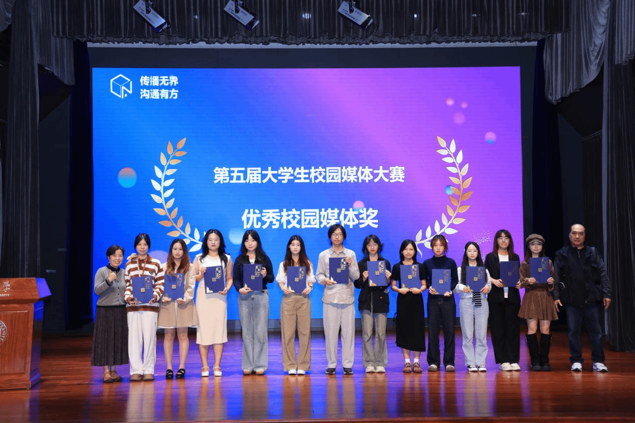 本网讯 11月1日,第五届大学生校园媒体大赛颁奖典礼在深圳大学传播学院隆重举行,我院师生代表受邀出席赛事活动。最终,在这次全国性的激烈赛事竞逐中,我院学子在本届赛事中斩获佳绩,《端视点》公众号首次荣获赛事的“十佳优秀校园媒体”称号,公号作品荣获深度报道类三等奖,这是我院学子继去年在大学生校园媒体大赛荣获两项赛事奖励之后再度收获佳绩,展现了文传学子扎实的新闻采写功底。