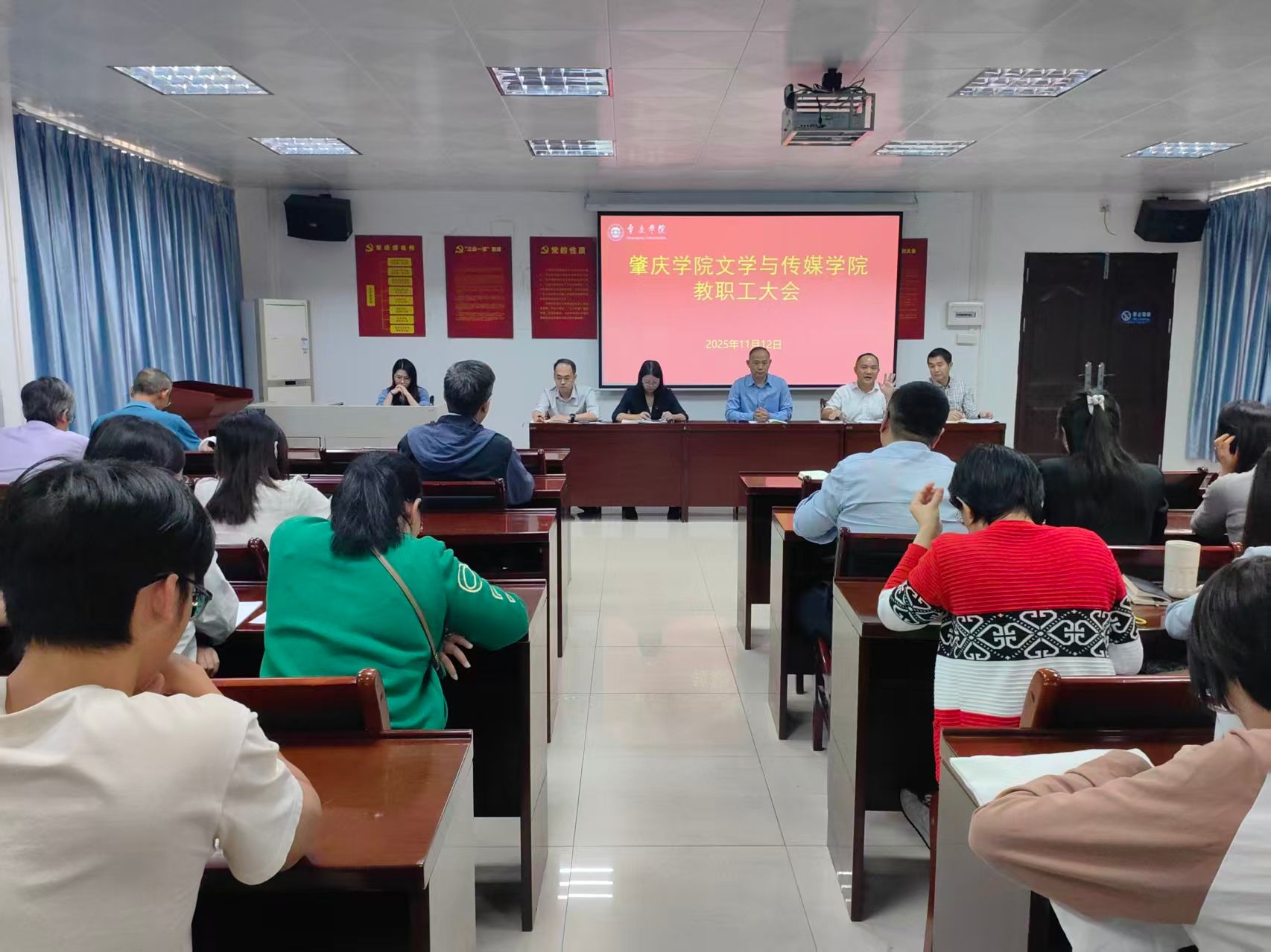 本网讯 11月12日,我院召开全体教职工大会,学院领导班出席,全体教职工参会。会议围绕校庆布置、教学科研、学工工作等多项核心工作进行深入部署与交流。