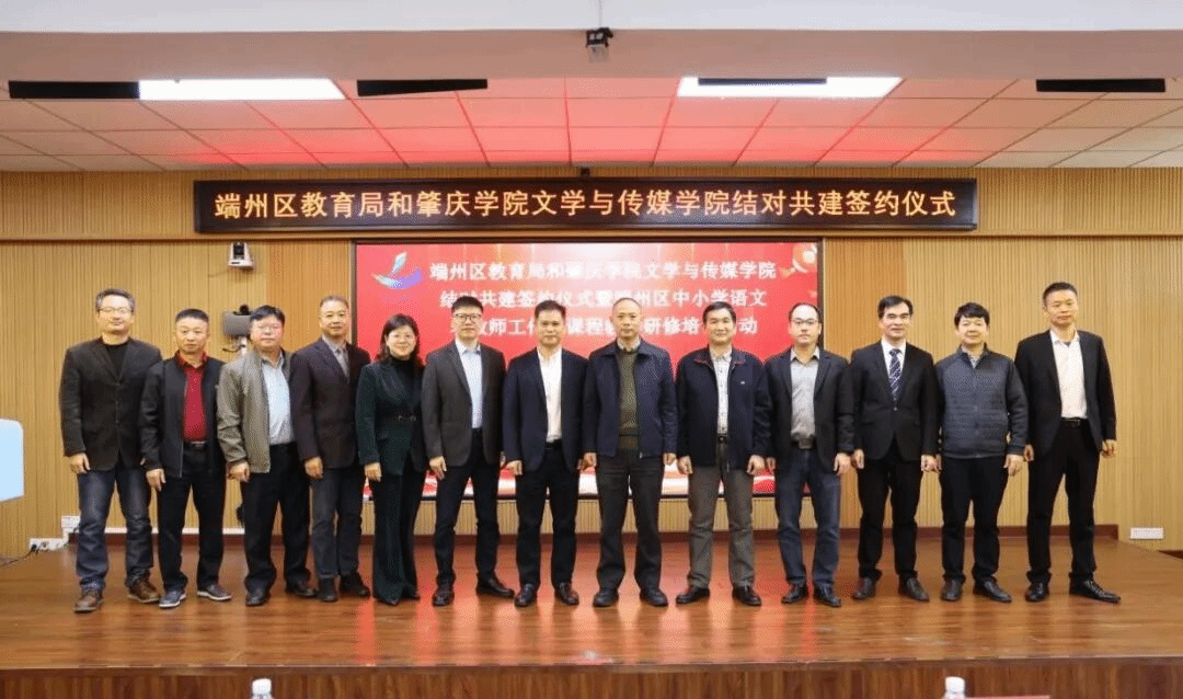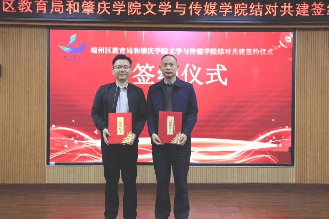 本网讯 12月17日,文学与传媒学院和端州区教育局举行结对共建签约仪式。双方将以“优势互补、资源共享、协同发展、互利共赢”为原则,在教师培养、教学改革、教育实习等方面开展深度合作,深入贯彻落实广东省“百县千镇万村高质量发展工程”及“百校联百县”行动部署,推动高校专业资源与区域教育实践深度融合,共同助力区域教育高质量发展。