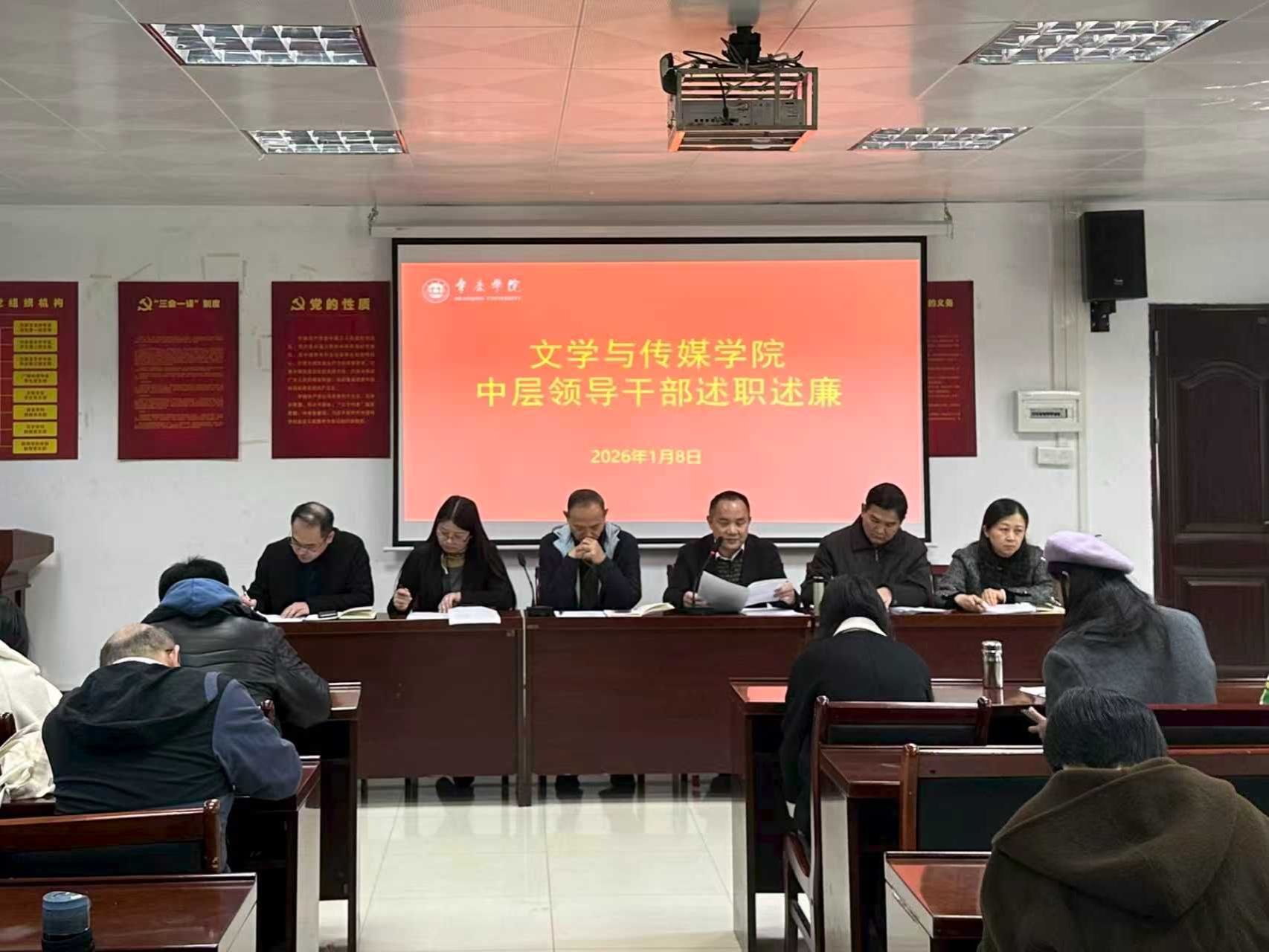 1月8日,我院举行2025年度述廉述职报告暨期末工作会议,学院领导班子、全体教职工参会,宣传统战部副部长梁少红到会指导。会议由学院党委书记陈伟林主持。