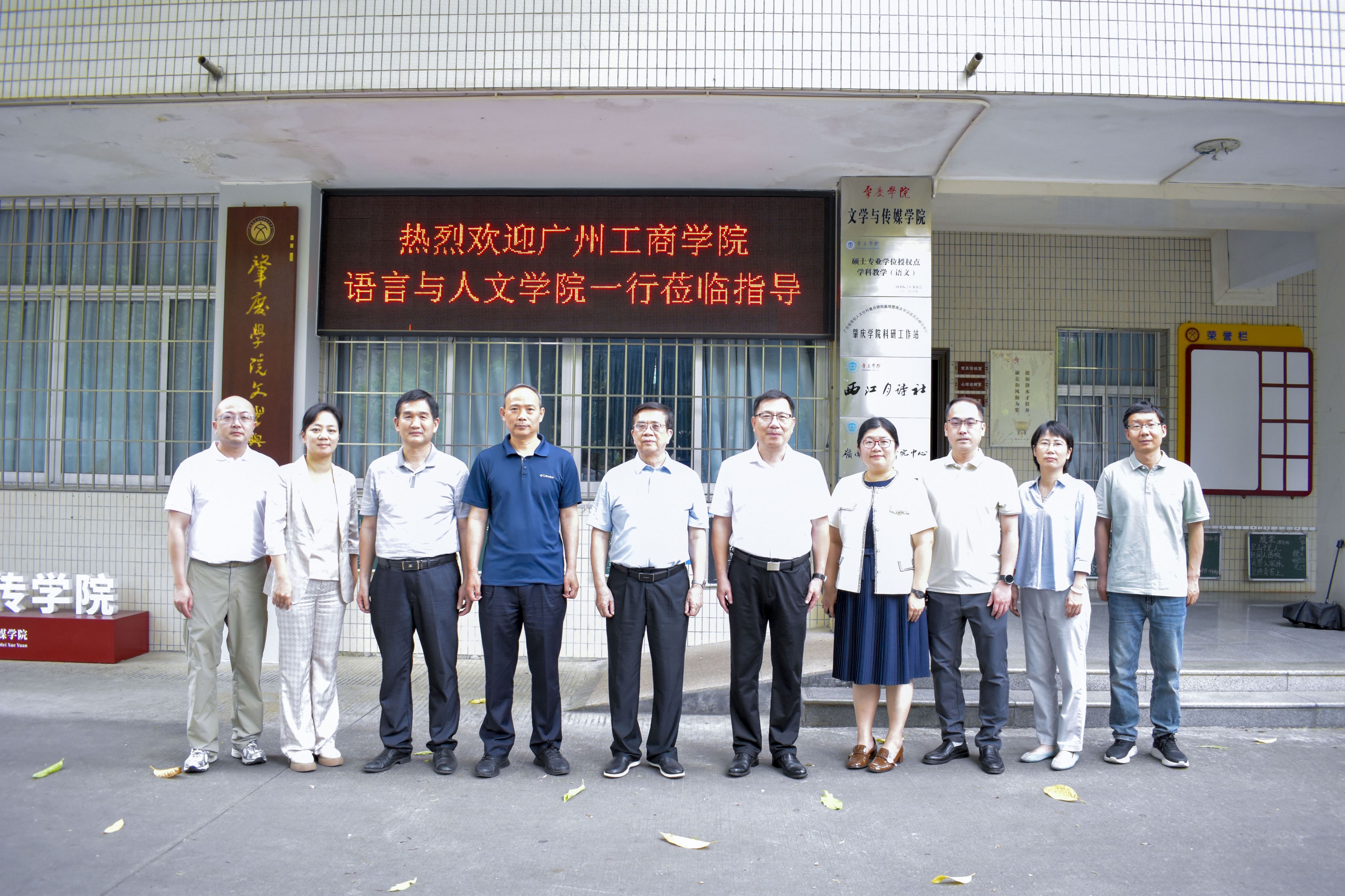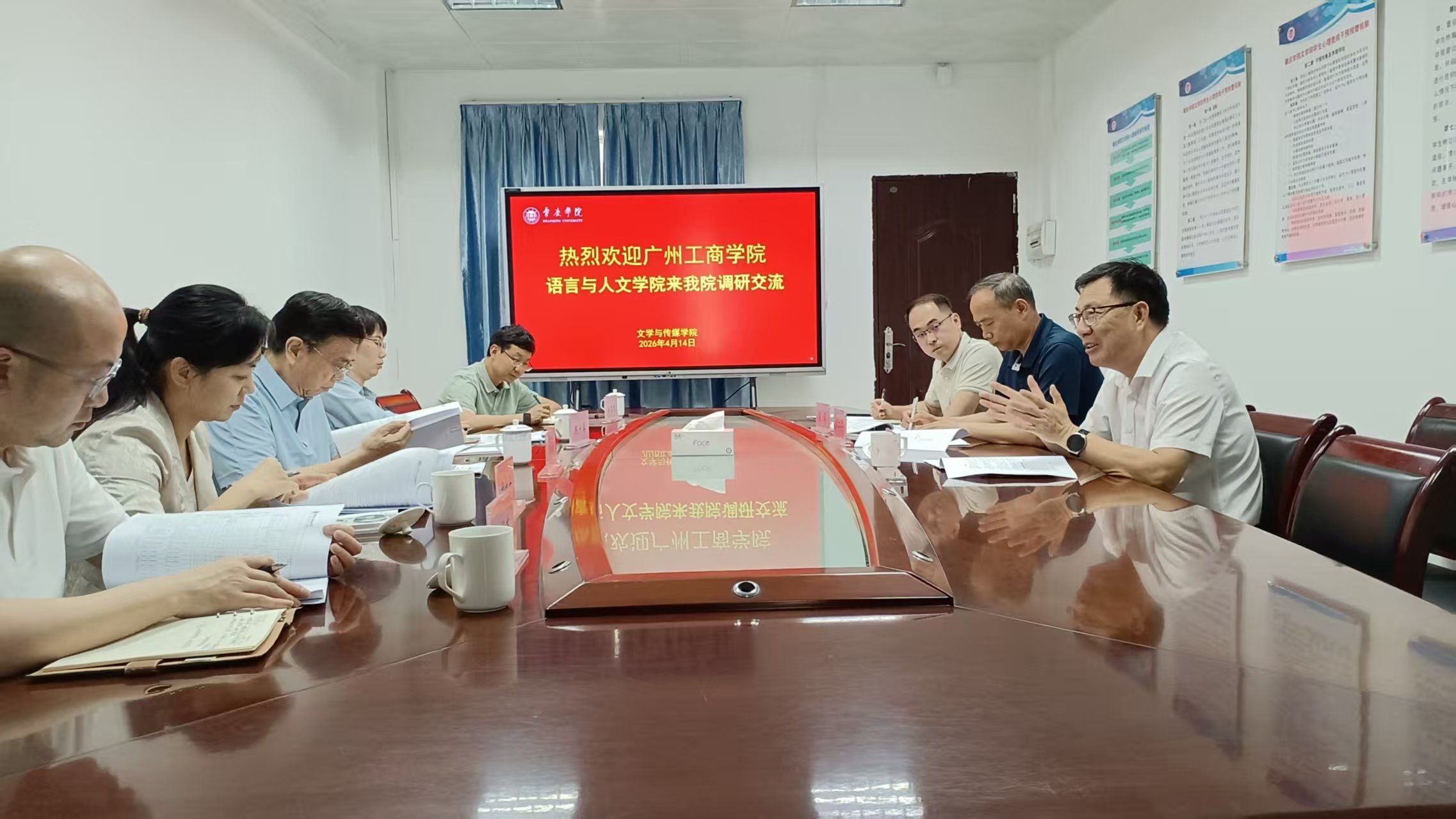 本网讯 4 月 14 日,广州工商学院终身名誉校长邝邦洪、语言与人文学院副院长邢佳平一行5人到我院开展中国语言文学学科建设和人才培养的专题调研和经验交流。肇庆学院校党委书记谢冠华,文学与传媒学院院长杨红军,文学与传媒学院副院长苏常出席座谈会,并与来宾开展深入交流。